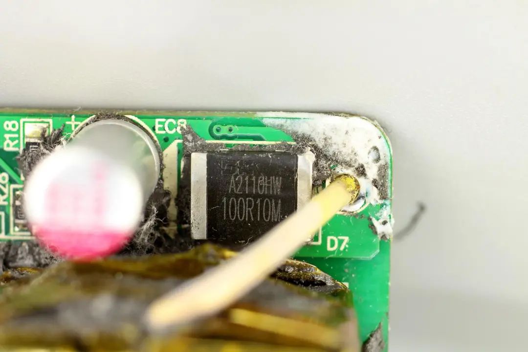 同步整流芯片來自東科,絲印100R10M,實際型號為DK5V100R10M,是一款零外圍的同步整流芯片,內置100V耐壓,10mΩ導阻的同步整流管,支持CCM,DCM和QR運行模式,可直接替代肖特基二極管,提升電源轉換效率。